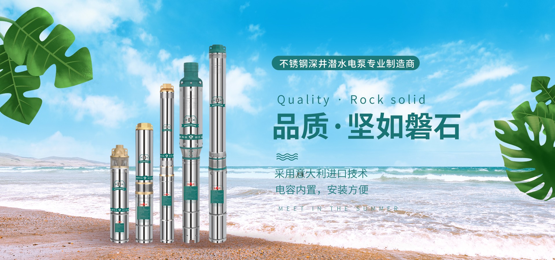 不僅僅是泵,更是流動的科技。十多年來,本公司堅持走:以質(zhì)量求生存以科技創(chuàng)新求發(fā)展,重合同守信用的道路,生產(chǎn)經(jīng)營得到迅速發(fā)展。更希望以后不管從發(fā)達(dá)城市到新農(nóng)村,從工業(yè)制造到尖端科技產(chǎn)業(yè)都隨處可見創(chuàng)江井泵的身影,創(chuàng)江深井泵已成為干萬用戶心目中優(yōu)質(zhì)和信心的保證我們將以優(yōu)質(zhì)的產(chǎn)品和最完善的售后服務(wù)來真誠與各界朋友開展廣泛的合作,共同創(chuàng)造一個美好的未來!